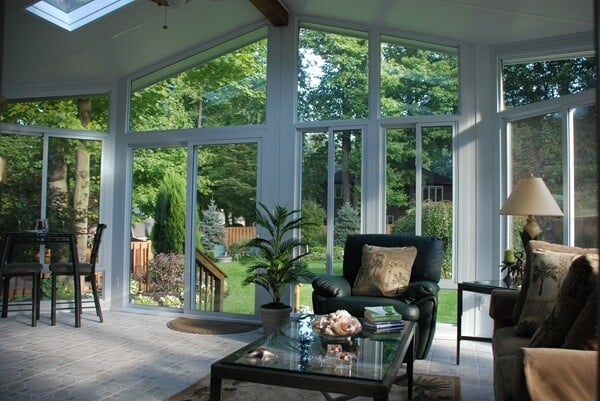 A bright, enclosed space with expansive windows that brings outdoor light and views indoors—great for reading, relaxing, or entertaining without wind, rain, or bugs. -