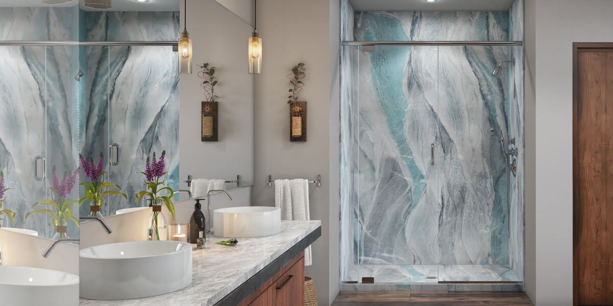 Look for non-porous, durable surfaces with fewer seams and grout lines. It’s one of the easiest ways to keep the space looking new longer.